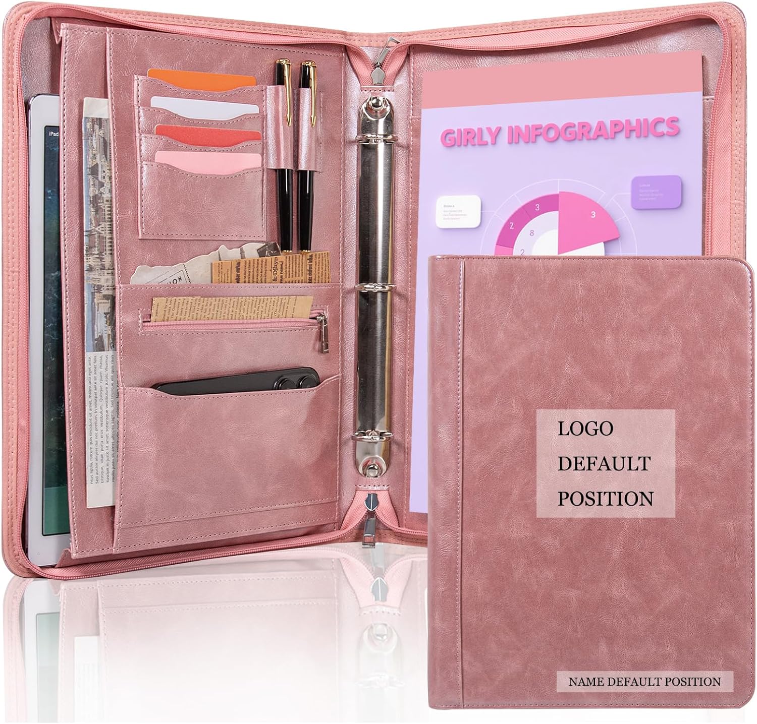 Calfinder Personalized Padfolios Portfolio Binder,3 Ring Leather Binder with Zipper,Professional Padfolios for Women&Men, Business Portfolio Organizer for Resume, Leather Folder for Ipad