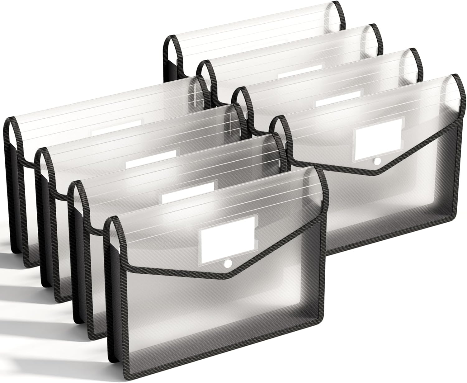 ABC life 8 Pack Plastic Expanding File Folder, Folders for Documents with Snap Closure, Black File Folder Organizer Holder, Transparent Accordion File Pouch,Large Capacity, Fit Letter/A4 Size - Black