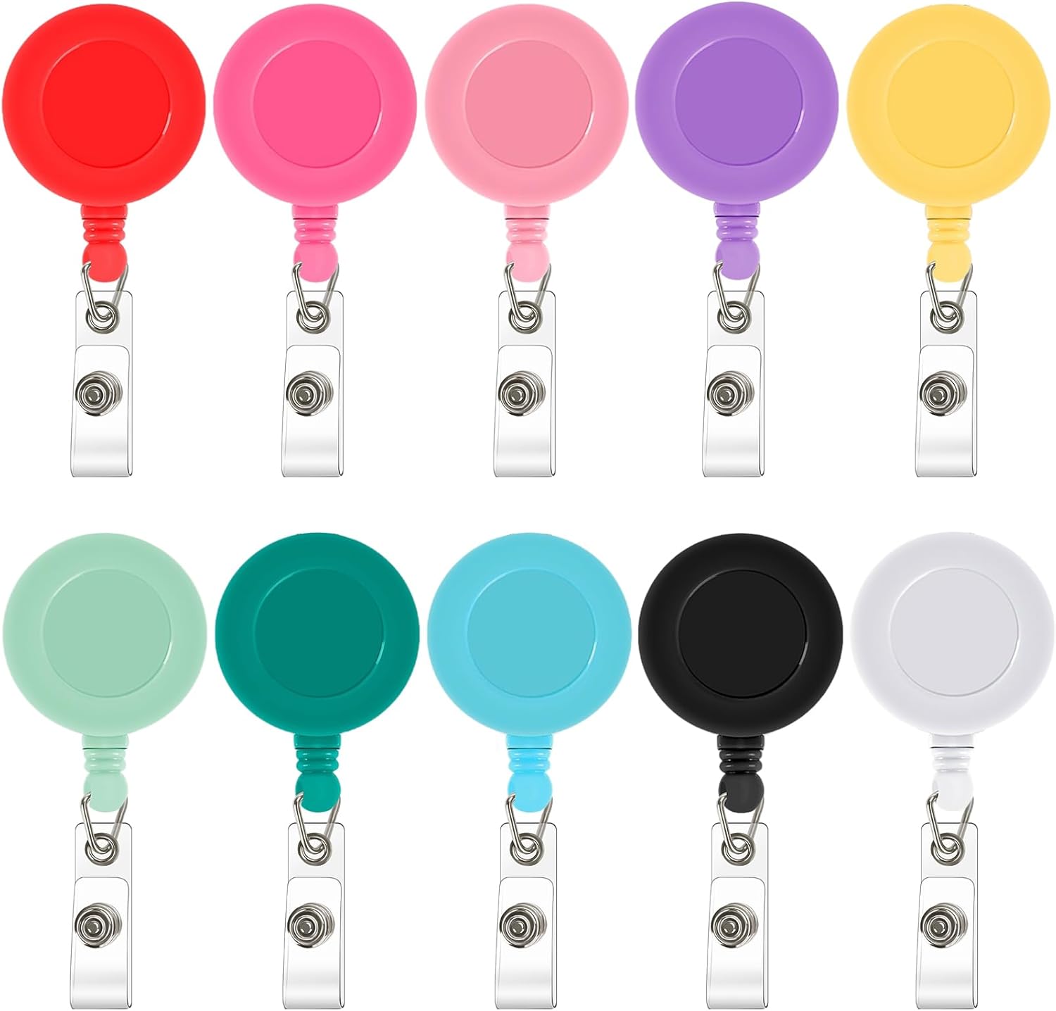 JANYUN 10 Pcs Retractable Badge Reel, Mixed Solid Color ID Badge Holder Retractable Clip for Nurse Doctor Teachers Students Office Workers Hanging ID Card Name Key Chain