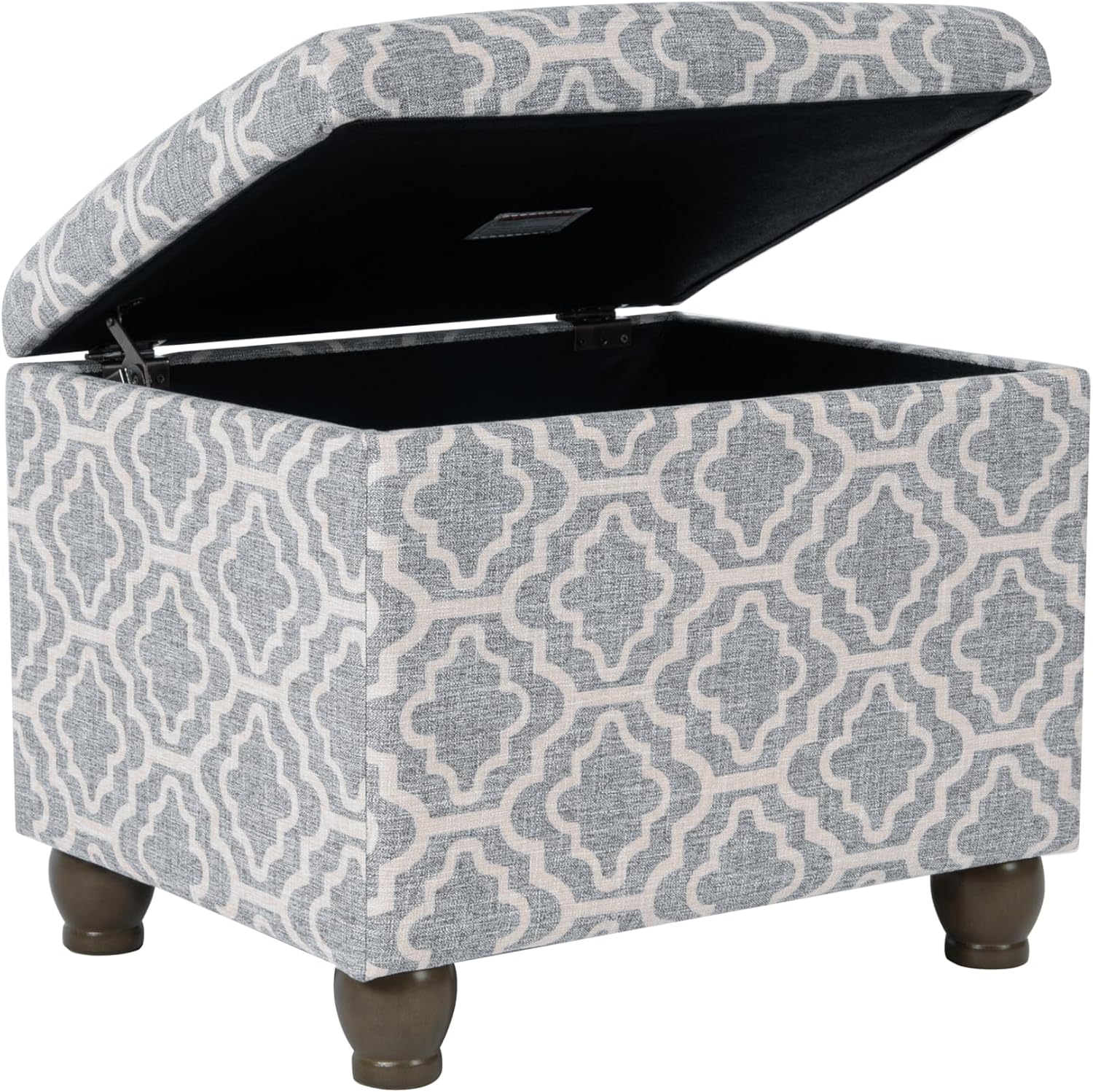 Home Decor | Upholstered MediumRectangular Storage Ottoman | Hinged Lid Ottoman with Storage for Living Room & Bedroom,Gray Geometric