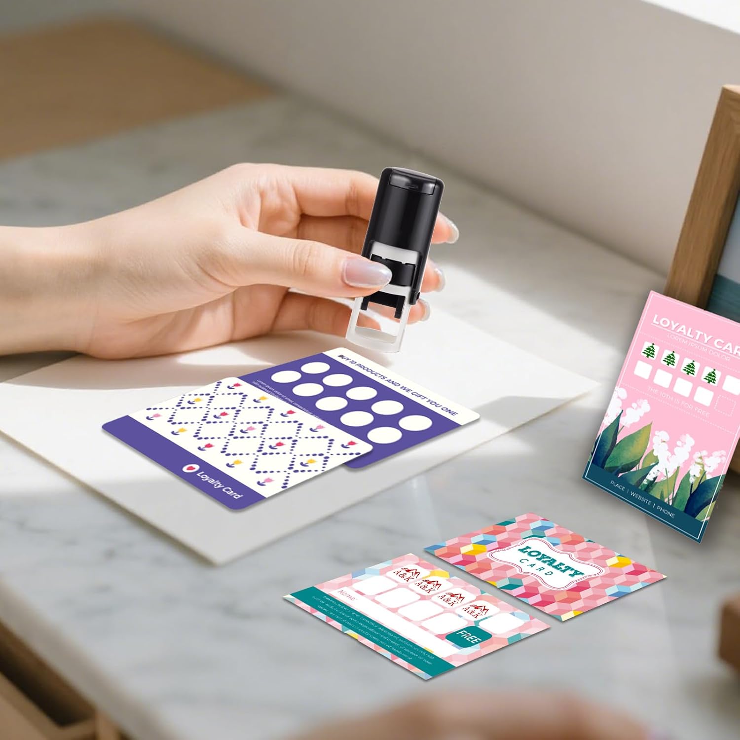 Custom Loyalty Card Stamp Self Inking & Refillable 4 Ink Color Options Upload Your Logo 12mm Personalized Mini Stamp for Coffee Cards, Reward Programs, Journals