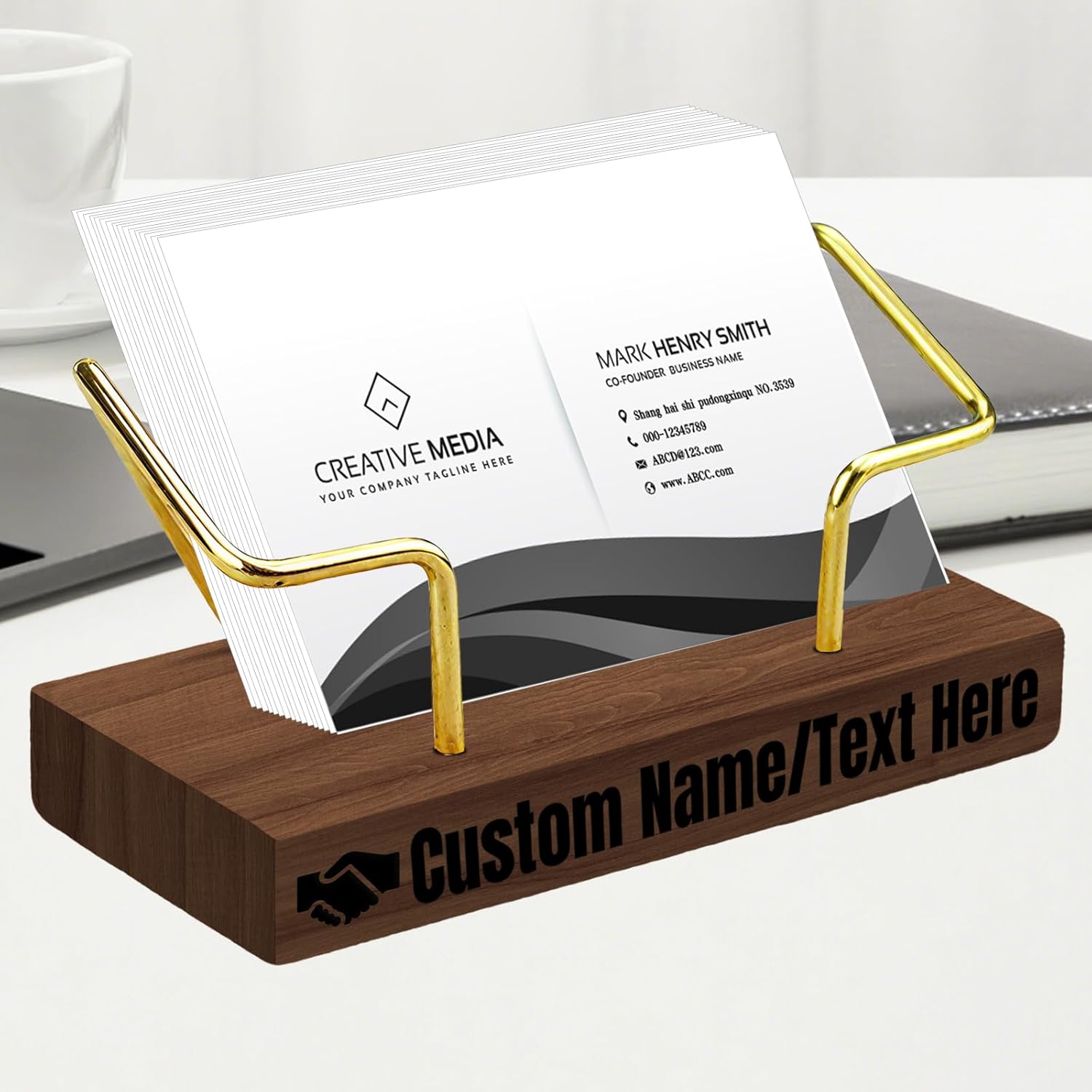- Materials and Exquisite Craftsmanship:custom desktop business card holder is crafted from quality wood and metal,personalized desk card holder boasts fine laser work.customized business card holder wood is polished for durability,resisting breakage or deformation.