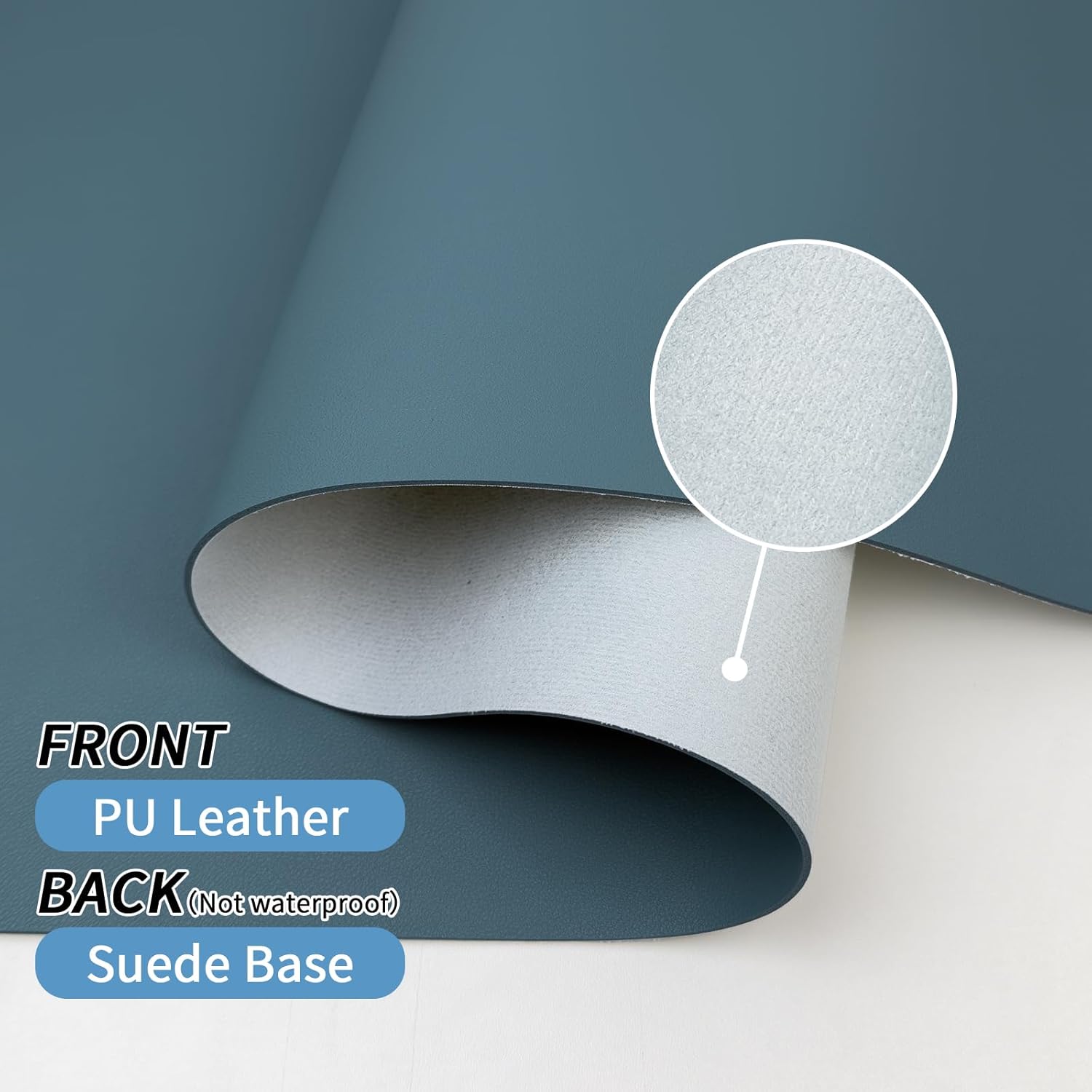 - 【Waterproof & Easy to Clean】The faux leather material desk mat is waterproof and heat resistant, easy to clean. It can perfectly protect your desktop from drinks, ink and other liquids. For cleaning, just wipe its surface stains with a damp cloth. Please note that its suede backing is not waterproof!