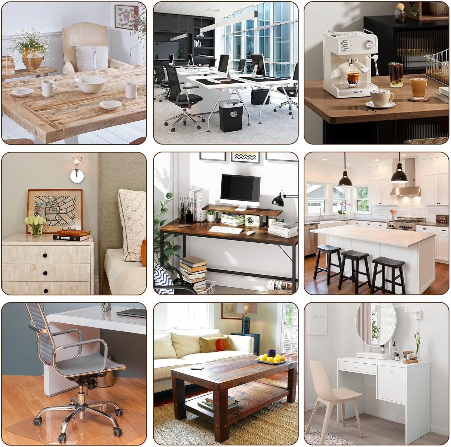 - Protect Your Table: Keep your furniture looking new with our crystal clear, scratch-resistant table protector. It prevents damage from scratches, scuffs, spills, and stains while showcasing the beauty of your table tops