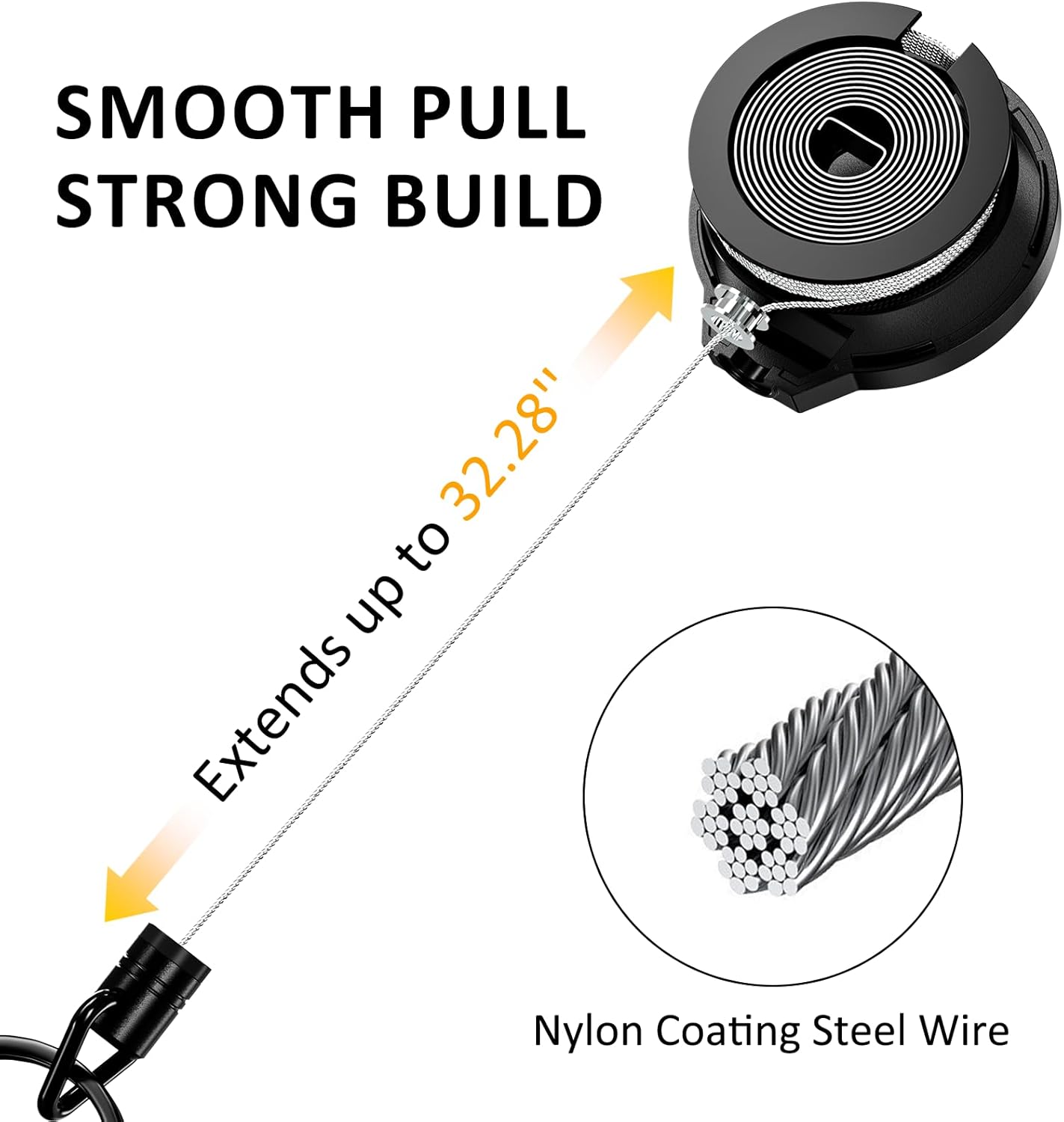 - 𝐂𝐨𝐧𝐯𝐞𝐧𝐢𝐞𝐧𝐭 𝐀𝐜𝐜𝐞𝐬𝐬--The retractable key chain can be attached to your belt or backpack for daily use, eliminating the need to search pockets or bags. The 32.28-inch retractable stainless steel cord allows quick access to keys and tools when you need them.
