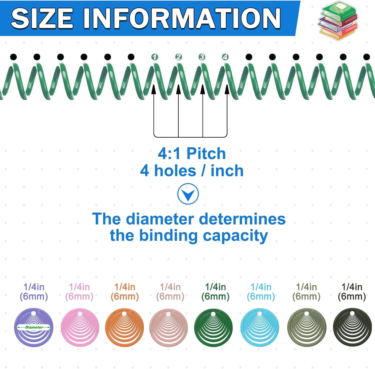 - 【4:1 Pitch & 48 Loops】Spiral Binding Coils (48 loops) are designed with a 4:1 pitch, fit any 4-holes-per-inch coil-binding machine, and letter paper is 8.5 x 11.0 inches. It helps to combine the report pages, calendars, documents, and more, providing much convenience to daily work or study. Their 4:1 pitch matches the 4-holes-per-inch punching pattern on the side of your book.