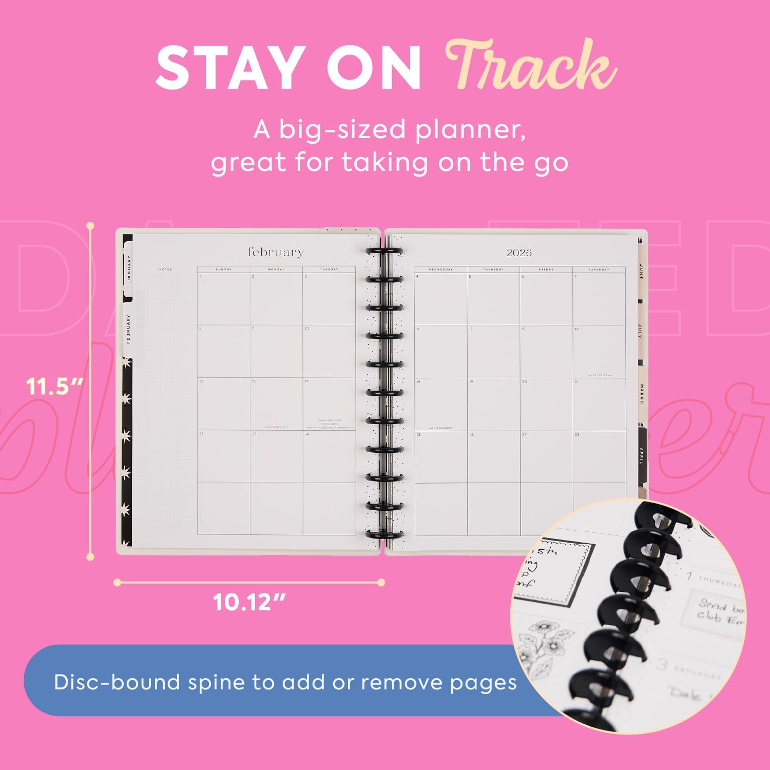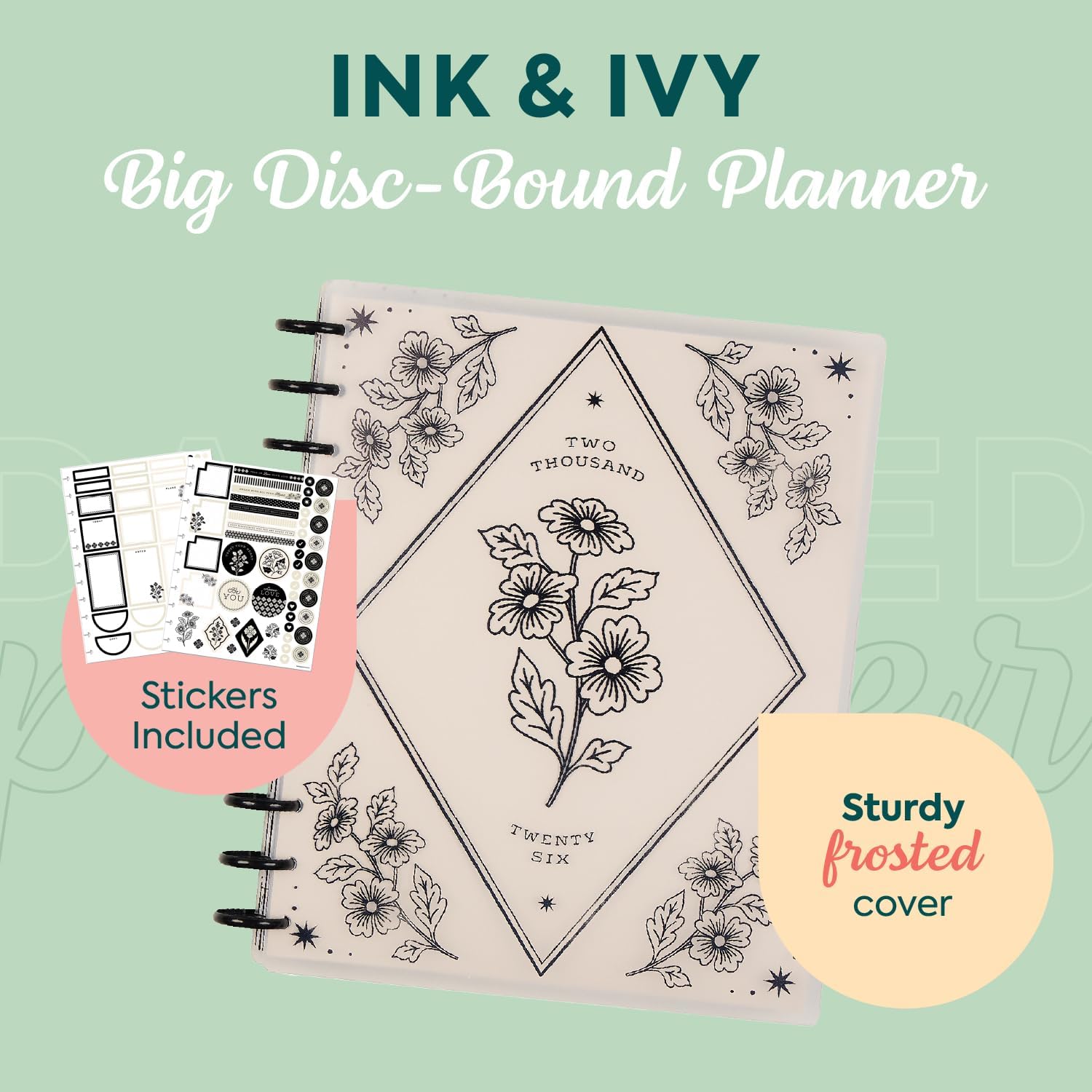 Happy Planner Disc-Bound Planner Jan.–Dec. 2026, Includes 3 Extra Months and 2 Sticker Sheets, Big Size, 8.5" x 11", Dashboard Layout, Ink & Ivy