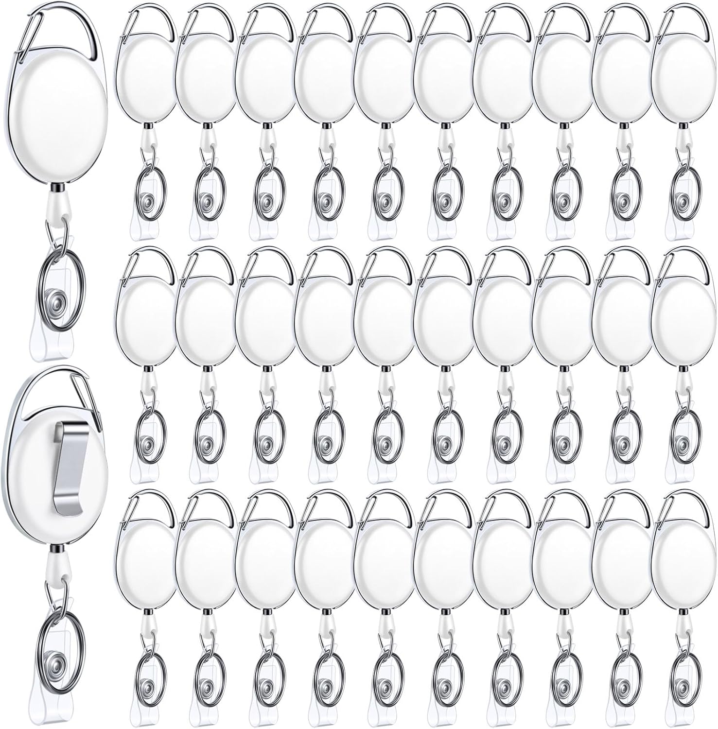 Honoson 30 Pcs Heavy Duty Retractable Badge Reels Batch ID Badge Holder Retractable Clip Bulk Key Holder with Ring for Office Worker Employee, Doctor Nurse Gifts (White)