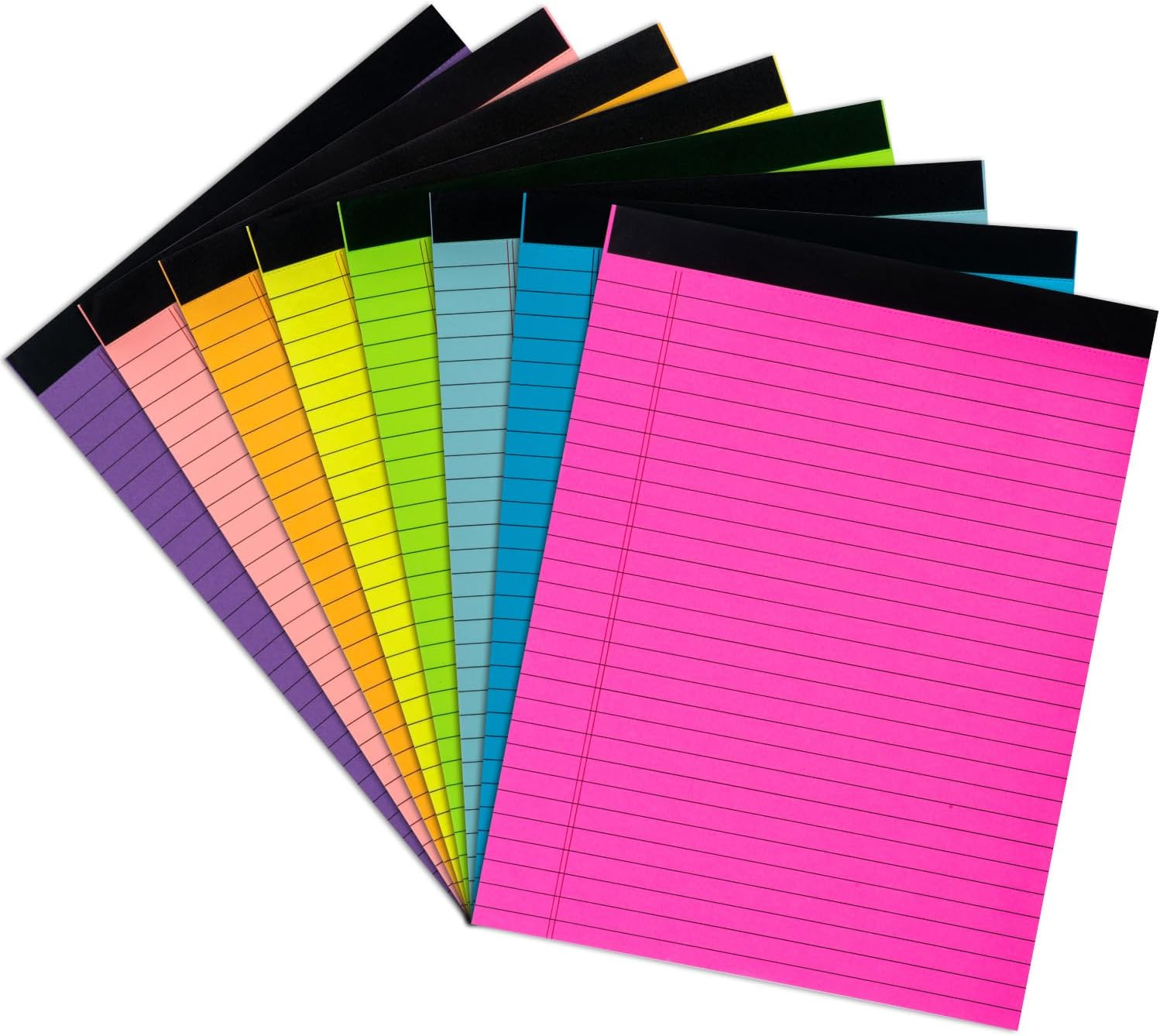- High-Brightness Neon Colors: Includes 8 eye-catching legal pads in vibrant neon shades, perfect for adding a splash of color to your notes and enhancing organization (Pink,Blue,Purple,Yellow,Orange,Green,Cyan,Orange-pink)