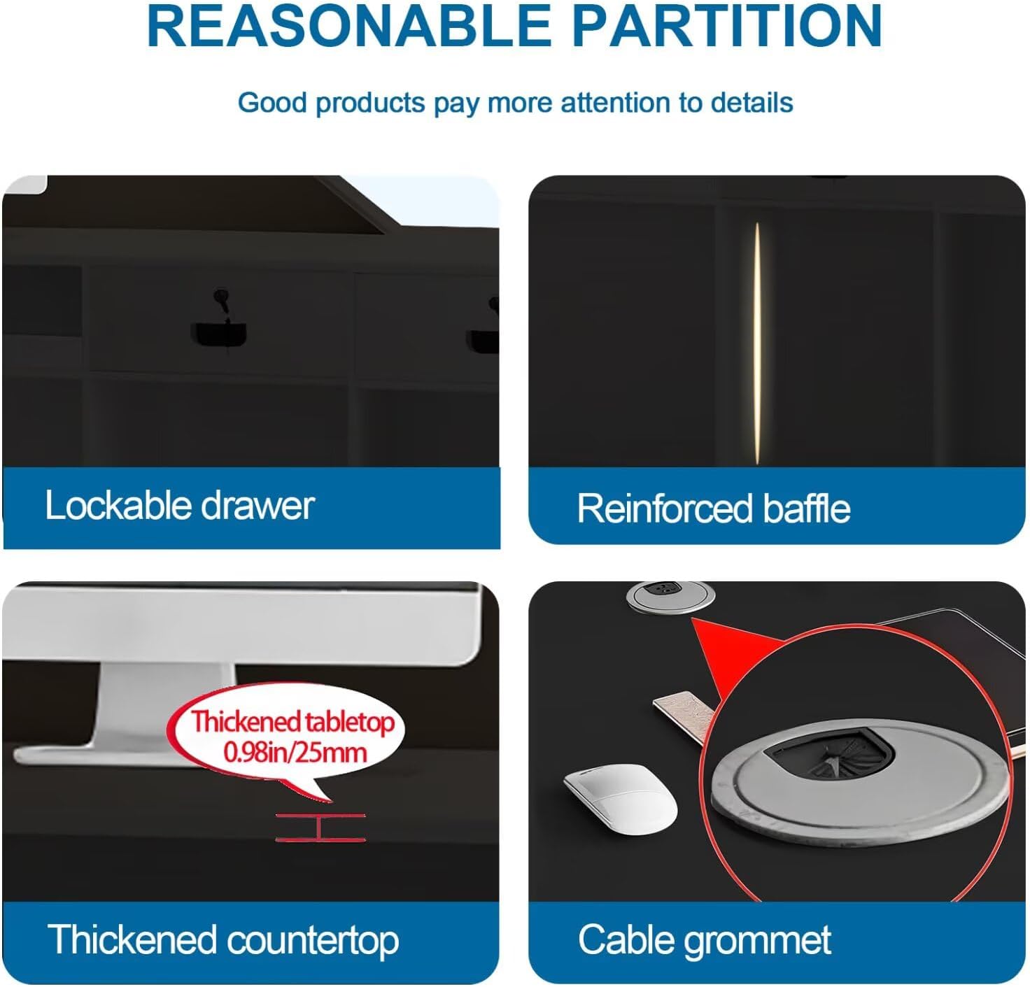 - Reception Table Cable: Reception desk with counter front desk black reception desk salon reception desk includes a stainless steel chrome-plated cable management cover, adding a stylish touch to your receptionist desk retail counter checkout office standing reception desk