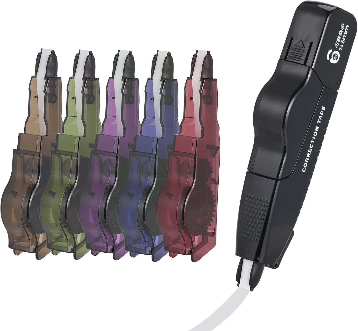 Refillable Quick-Dry White Correction Tape Set, 118ft(36m) Total, 6-Count Pack, Aesthetic Cute Pen-Shaped Applicator, School & Office Supplies(Black)