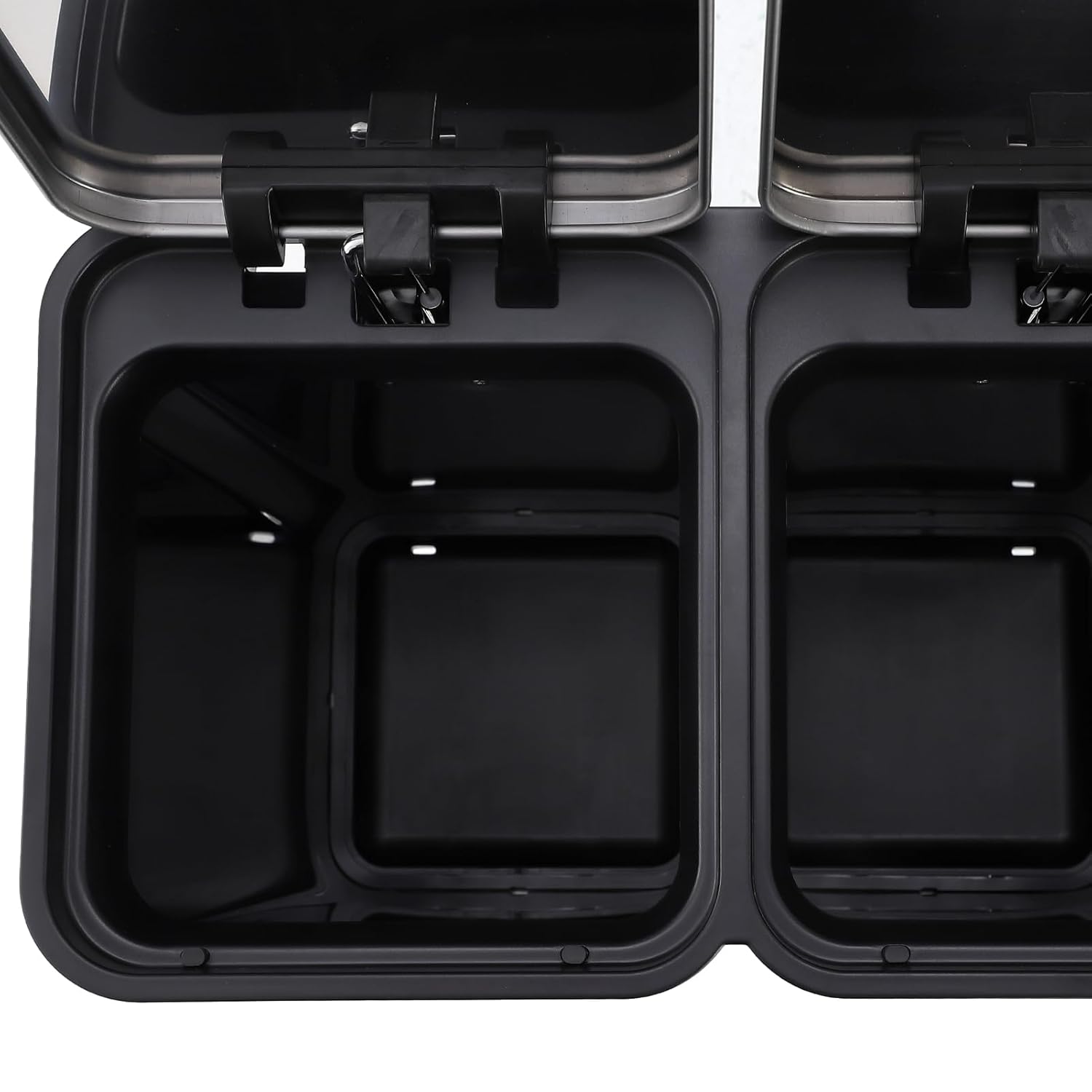 - 🔄 EFFORTLESS WASTE MANAGEMENT: Our dual compartment kitchen trash cans come with removable inner buckets featuring convenient side handles. Simply lift out each 30L/7.93-gallon bin for quick disposal - no more struggling with messy garbage bags in your kitchen trash cans!