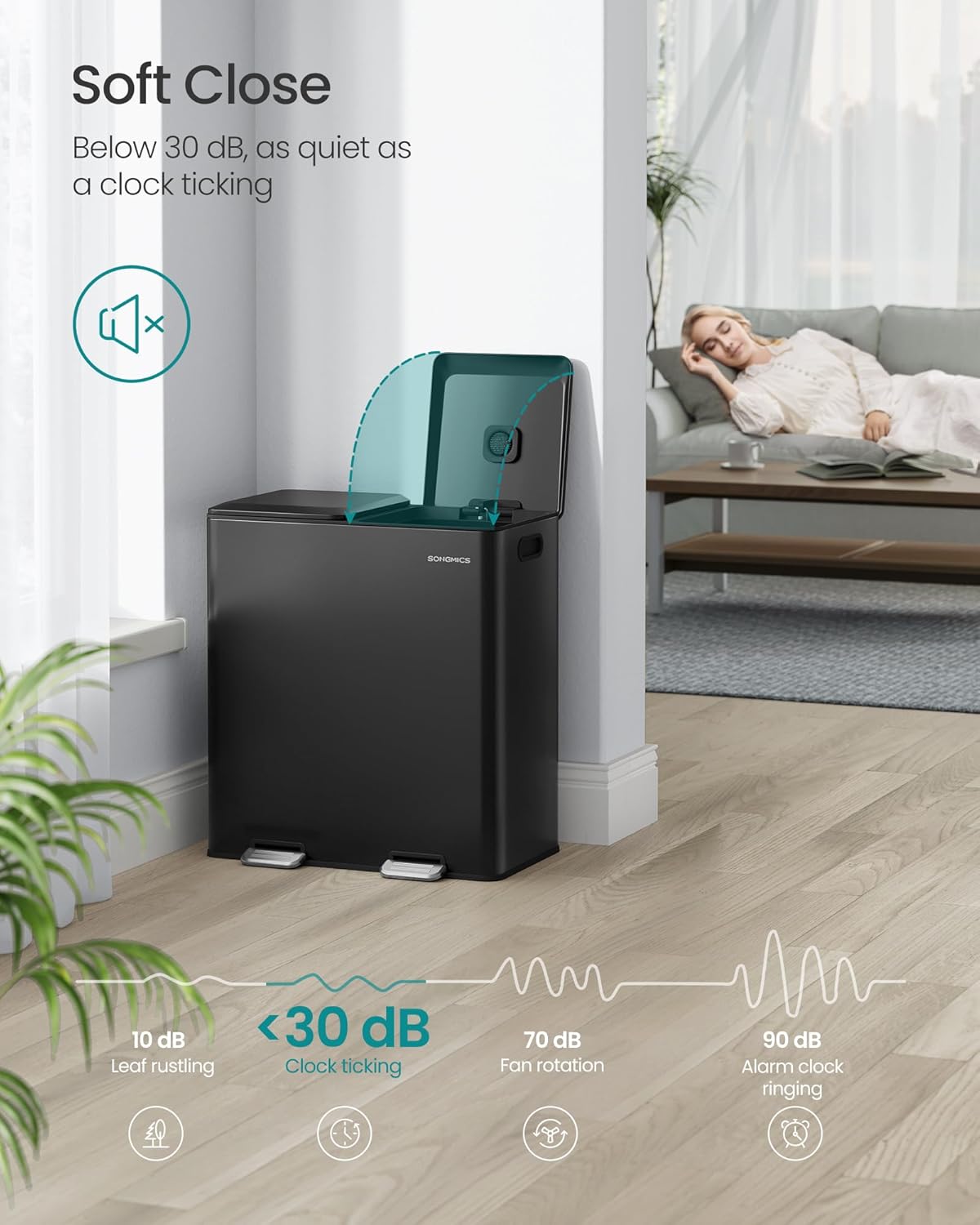 - Effortless Waste Separation & Emptying: 2 spacious 30 L removable inner buckets allow for easy waste sorting as well as hassle-free emptying and cleaning