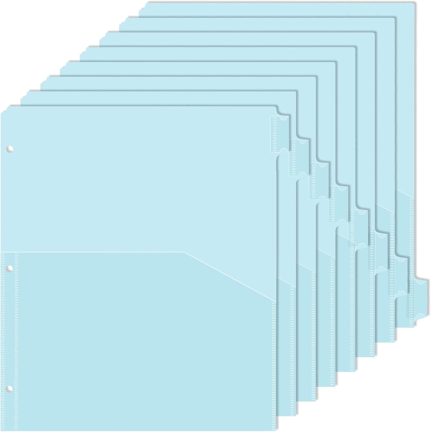 - 【Fits 3 RIng Binders】3 Holes punched, fit in 3 ring binders. Our Plastic Pocket Dividers are measured 9.7 X 11.5 inches, providing the maximum coverage for your letter-sized paper. There are a total of 5 dividers for 3 ring binder with pockets in the package.
