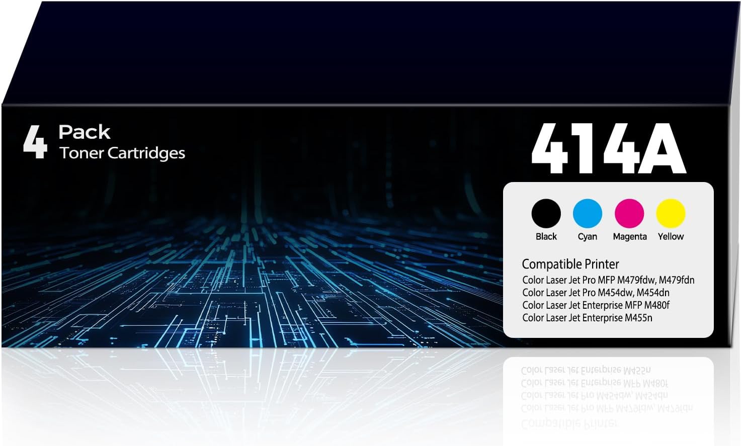 - Package Content: 1 x 414A black toner cartridge, 1 x 414A yellow toner cartridge, 1 x 414A cyan toner cartridge and 1 x 414A magenta toner cartridge. 4 Pack 414A ink cartridges in total.