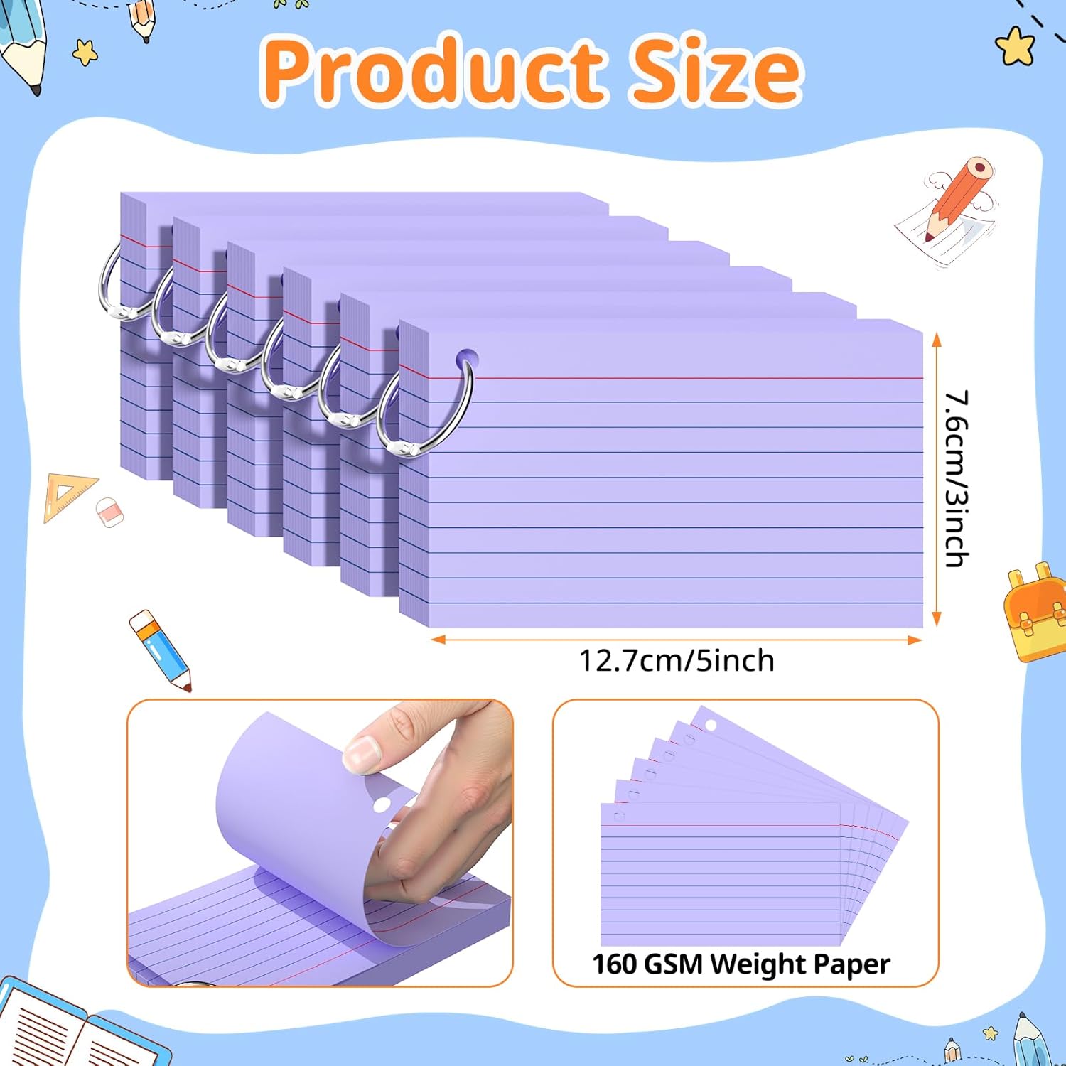 - 【Package included】You will get 300PCS purple index cards with 6 rings, including 6 pack, 50 pieces of each pack. Adequate quantity and diverse colors to meet your daily study and work needs.