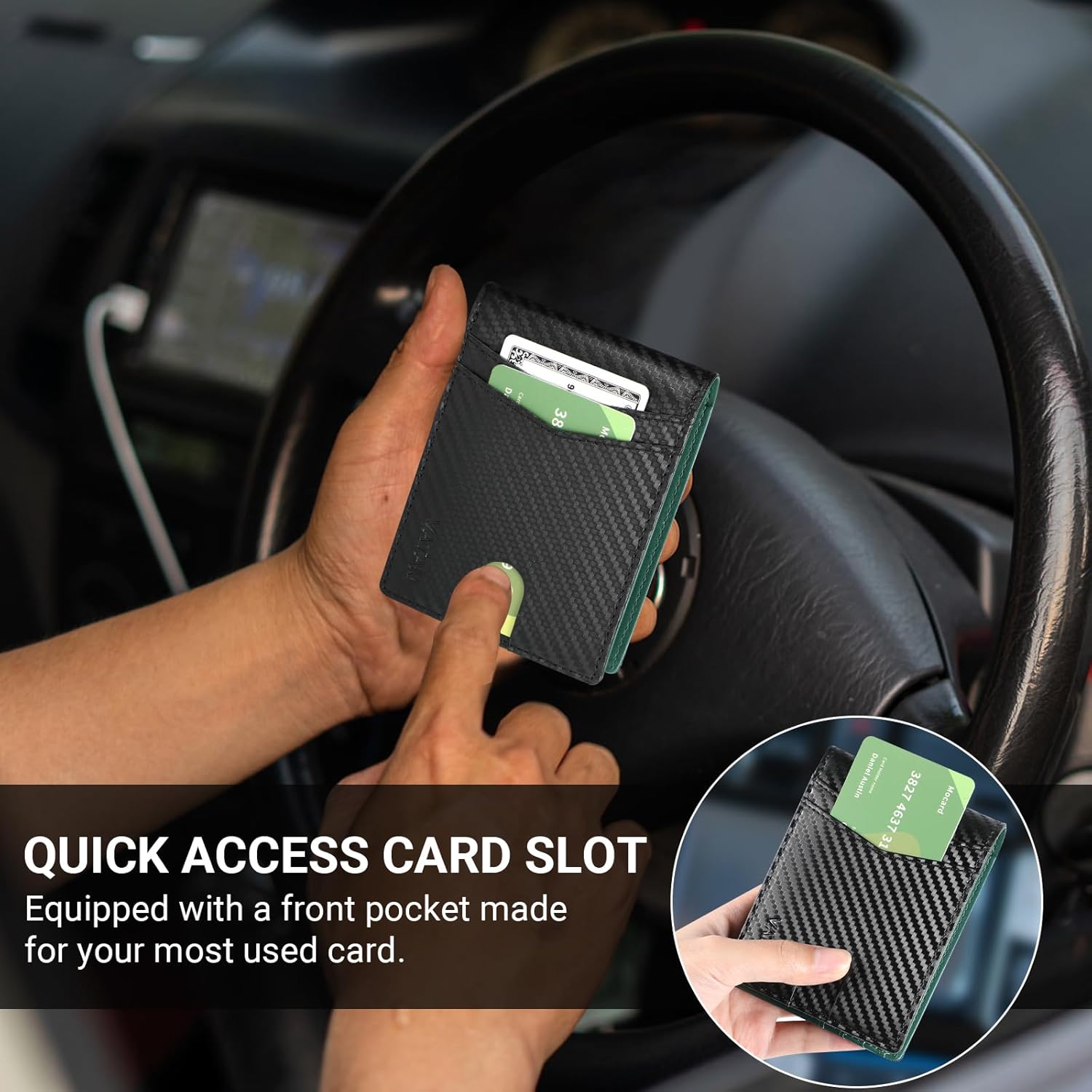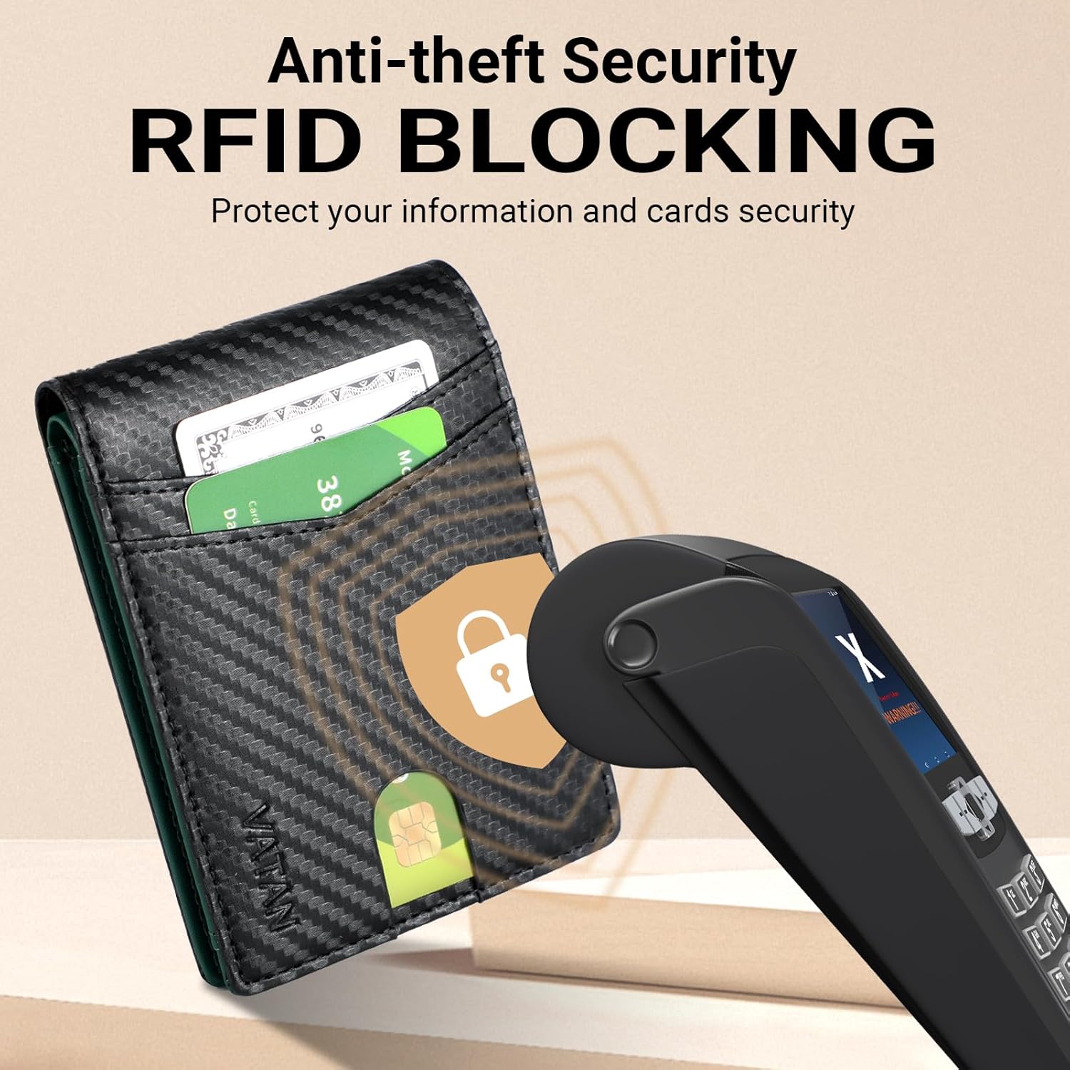 VATAN Wallet for Men, Mens Minimalist Wallet Credit Card Holder, Slim Leather Rfid 2 ID Window Large Capacity With Gift Box (Carbon black and Green)