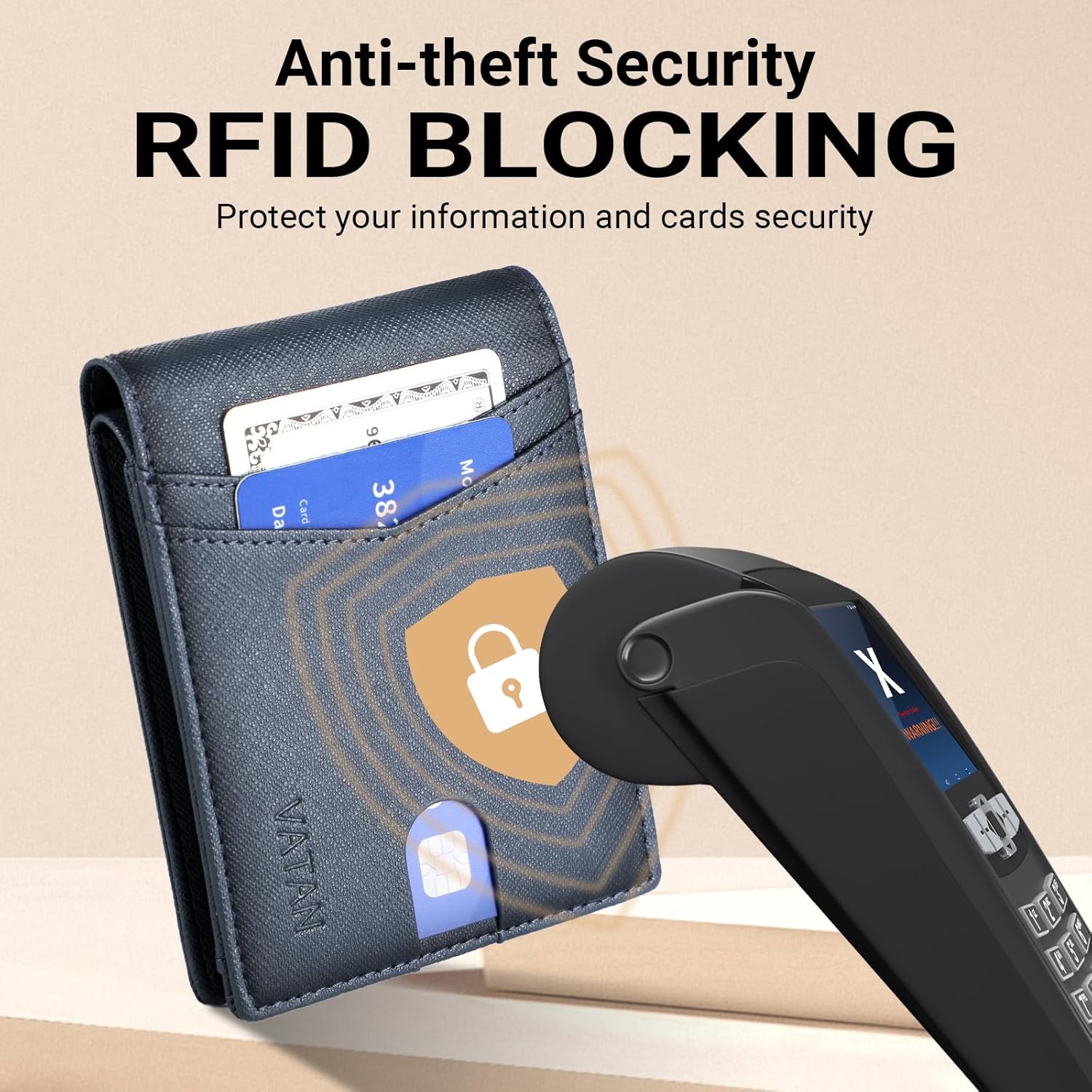 VATAN Wallet for Men, Mens Minimalist Wallet Credit Card Holder, Slim Leather Rfid 2 ID Window Large Capacity With Gift Box (Cross Grain Deep Blue)