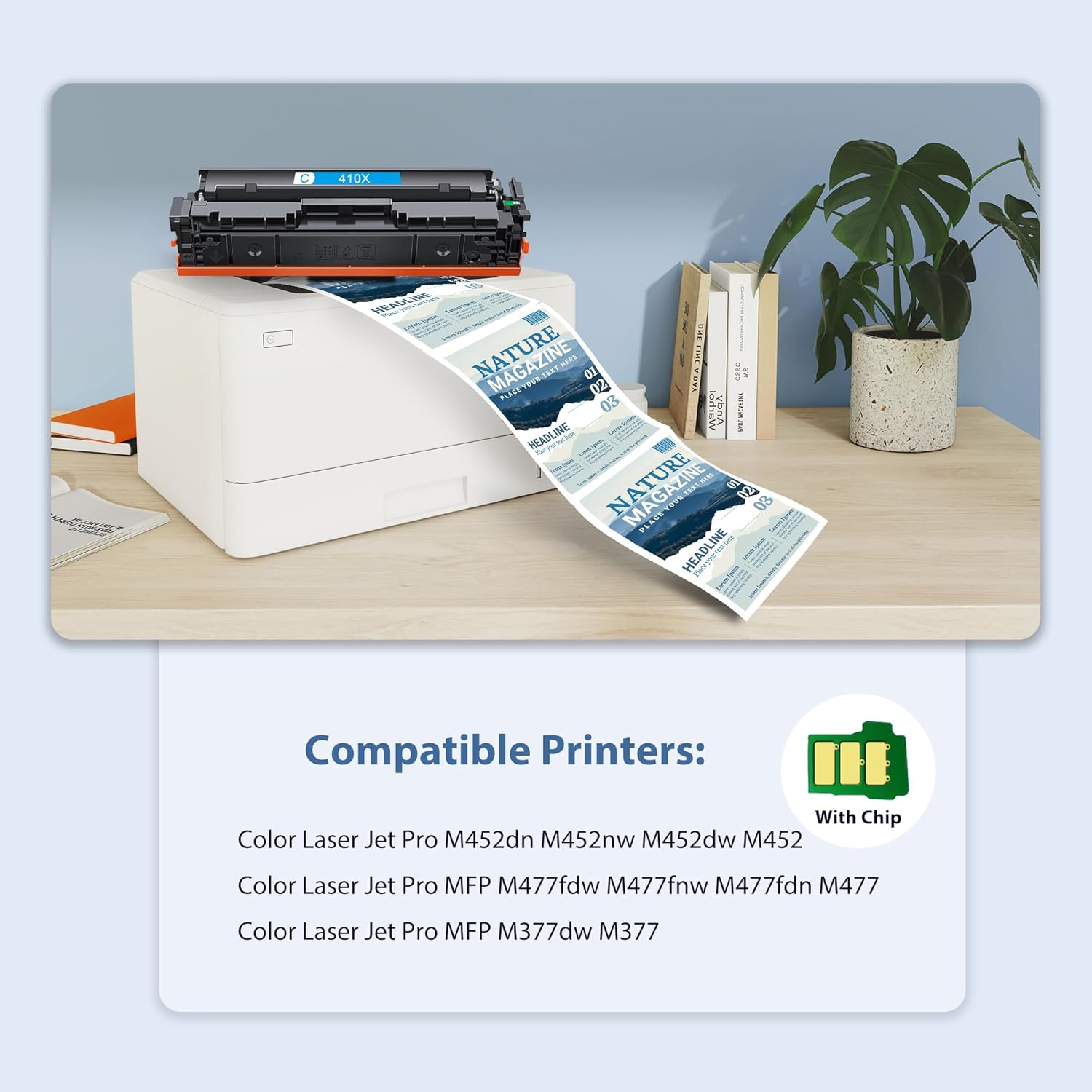 - Extra High Yield: up to 6,500 pages per 410X black toner cartridge, 5,000 pages for per 414x color toner cartridge (based on 5% coverage of A4 paper).