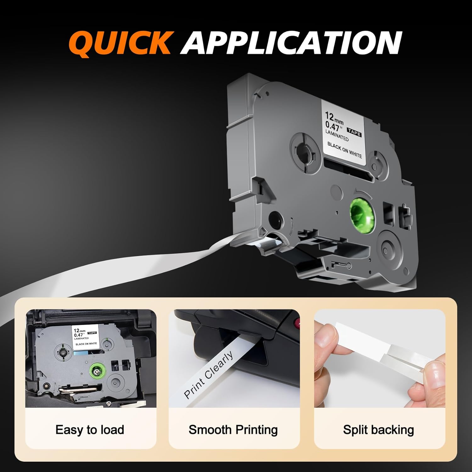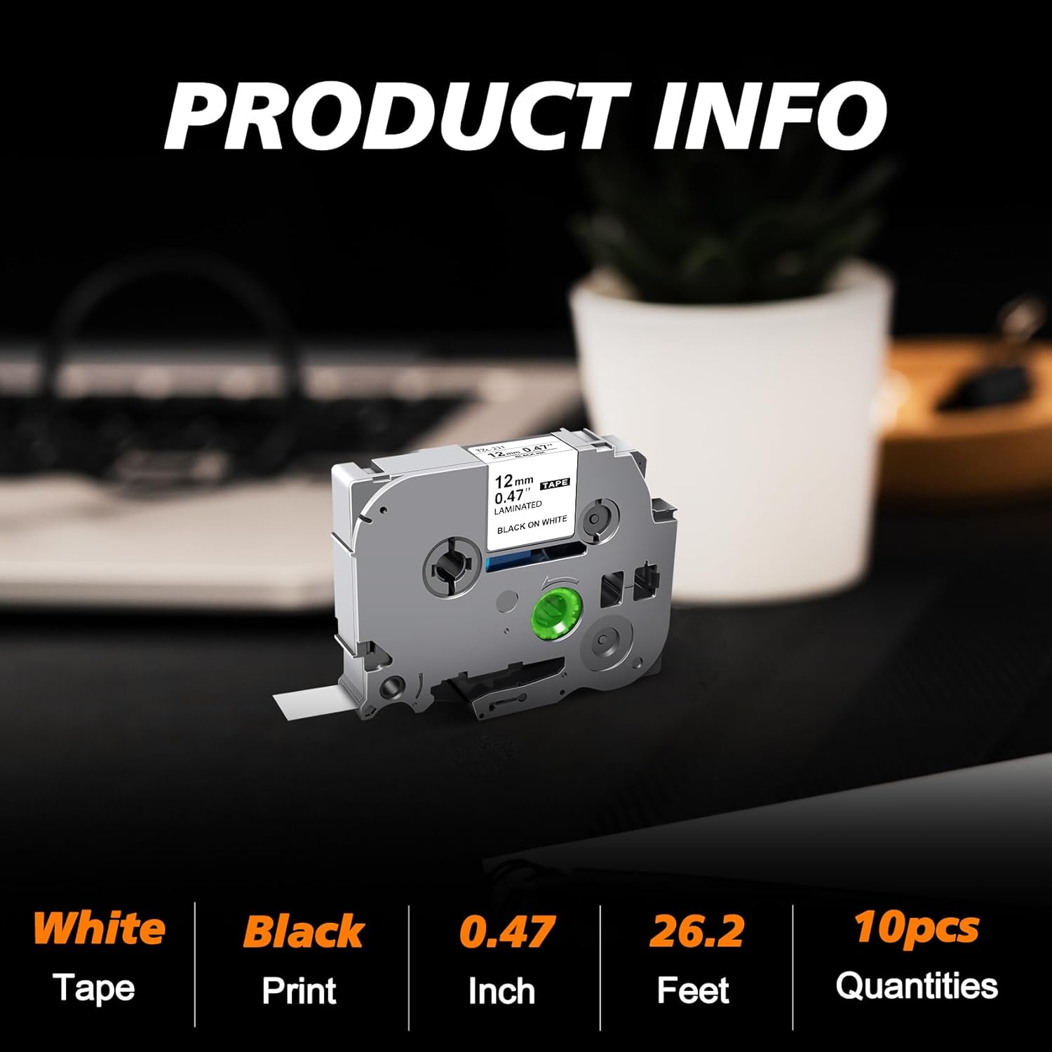 - 【Versatile Use】 Compatible with Brother laminated tape 12mm 0.47 white, our label tape refills is suitable for a variety of applications, from office organization to home labeling. It's the perfect addition to your P Touch label maker