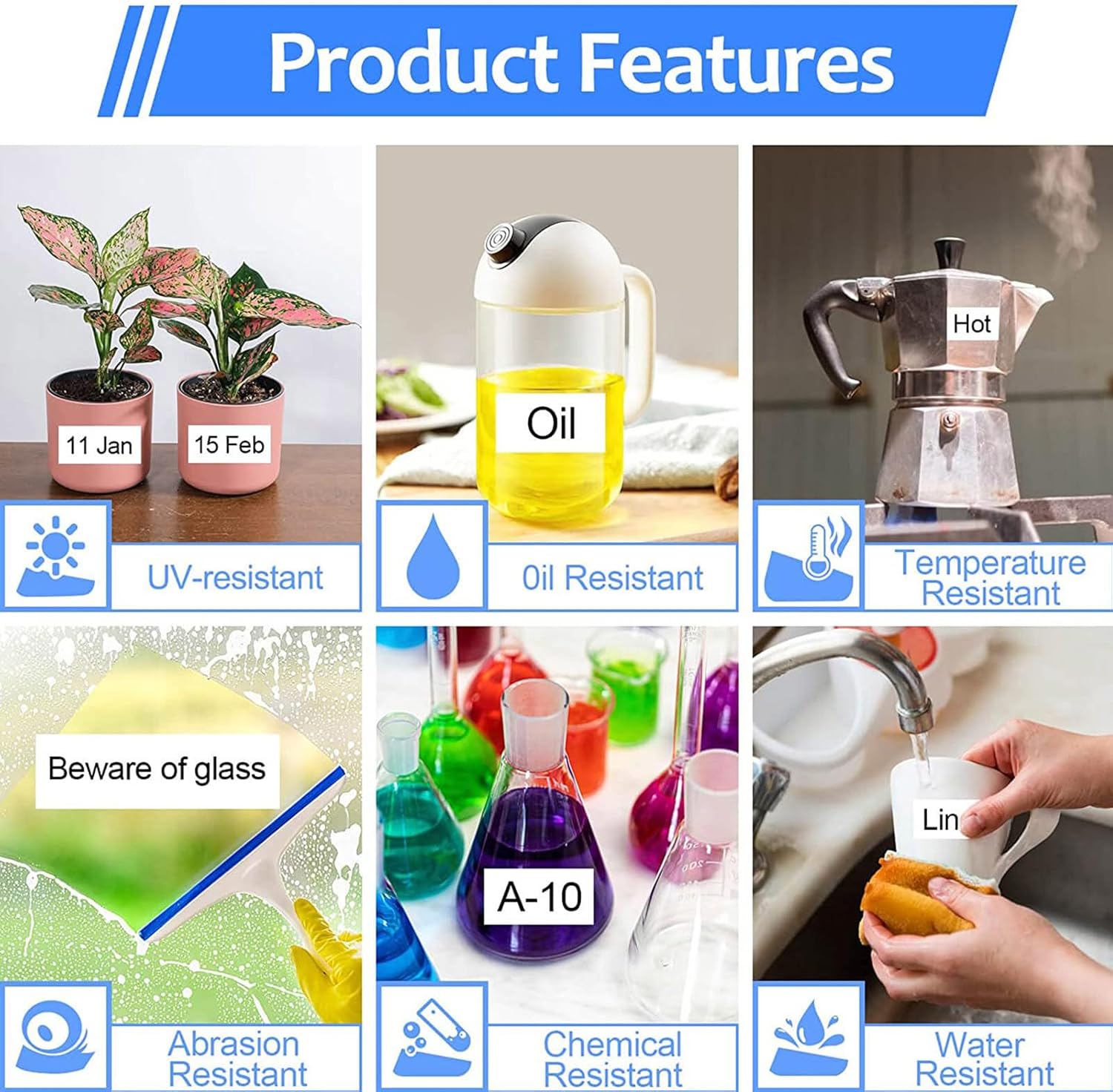- These 24mm tze label tapes are water resistant/waterproof, grime resistant, grease resistant, temperature resistant, abrasion resistant, chemical resistant as well as fading resistant.