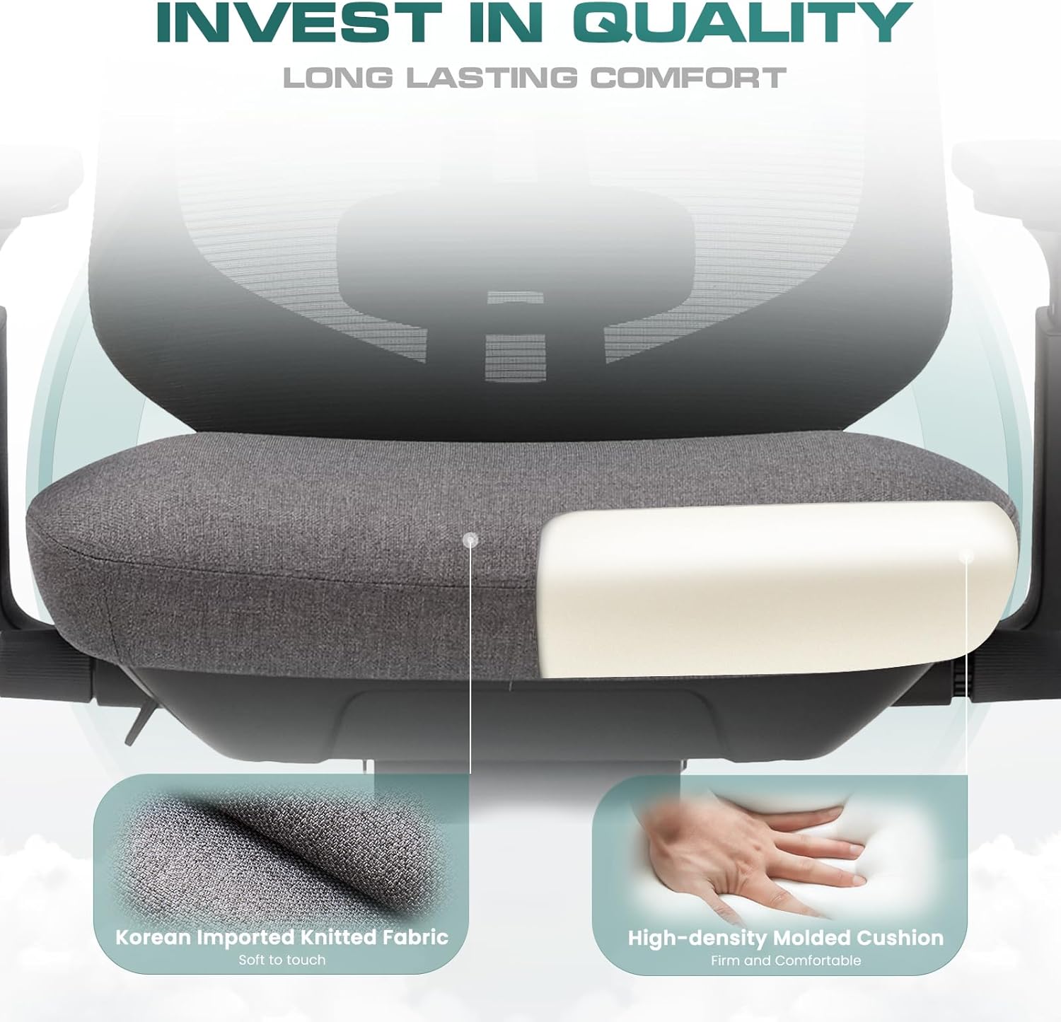 - ⏩ VENTILATED ERGONOMIC MESH OFFICE CHAIR--Adopting high-end breathable mesh fabric imported from Korea with great flexibility and durability, the high back office chair perfectly fits the curve of your spine and protects the cervical and lumbar spine. In addition, the lumbar support also offers well support for your back.