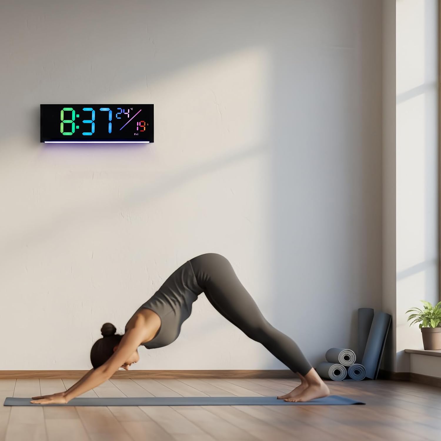 11-Inch LED Digital Wall Clock with RGB Flowing Light, Seconds, Date, Time, Temperature| Clear Large Numbers, Dual Alarm Settings, Remote Controlled | Stylish Modern Clock for Living Room, Bedroom