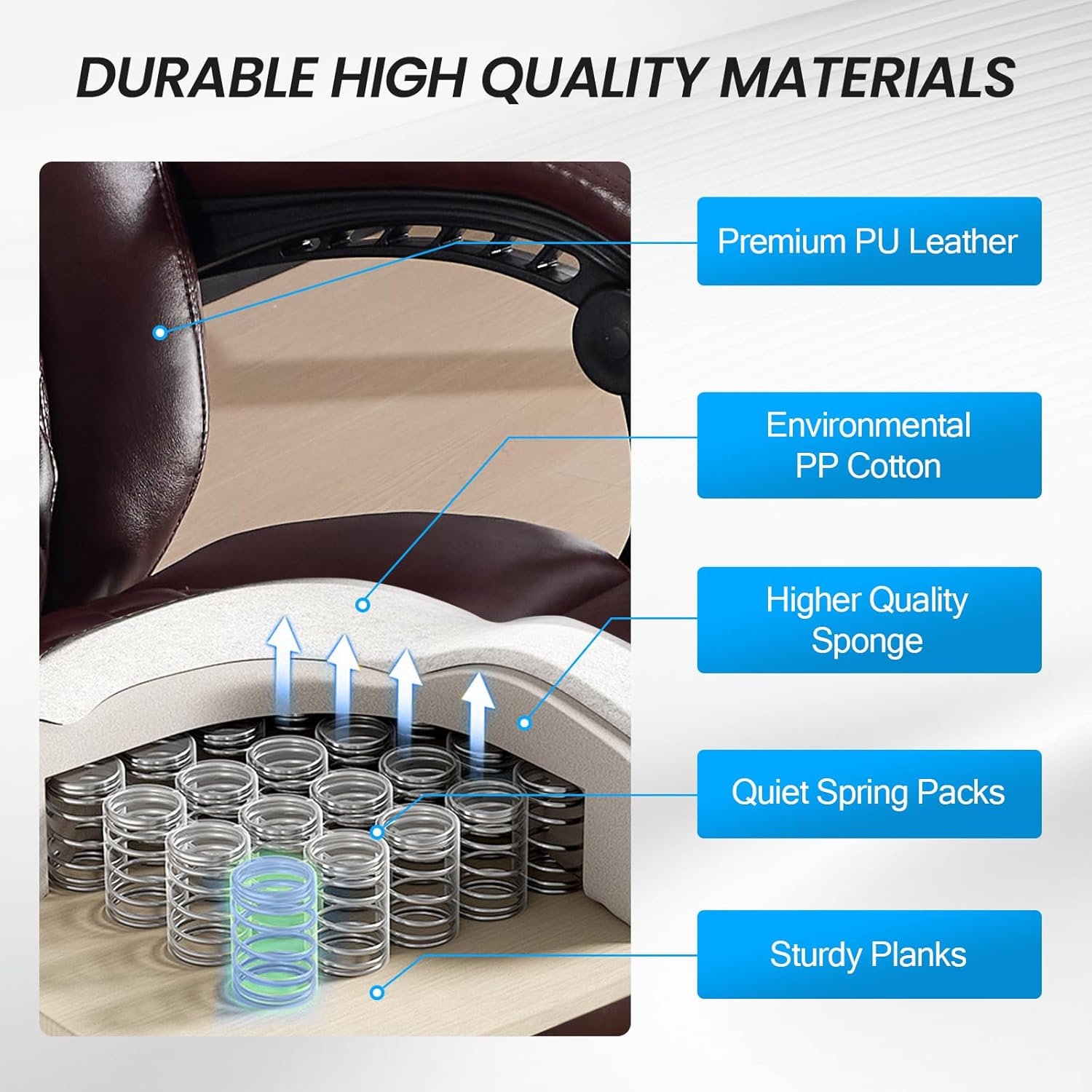 - Premium Comfort Executive Chair: Experience premium comfort and breathability. Features high-resilience foam cushioning wrapped in durable, easy-clean breathable PU leather. The thicker seat incorporates memory foam and high-resilience springs for lasting softness and support in this Executive Desk Chair