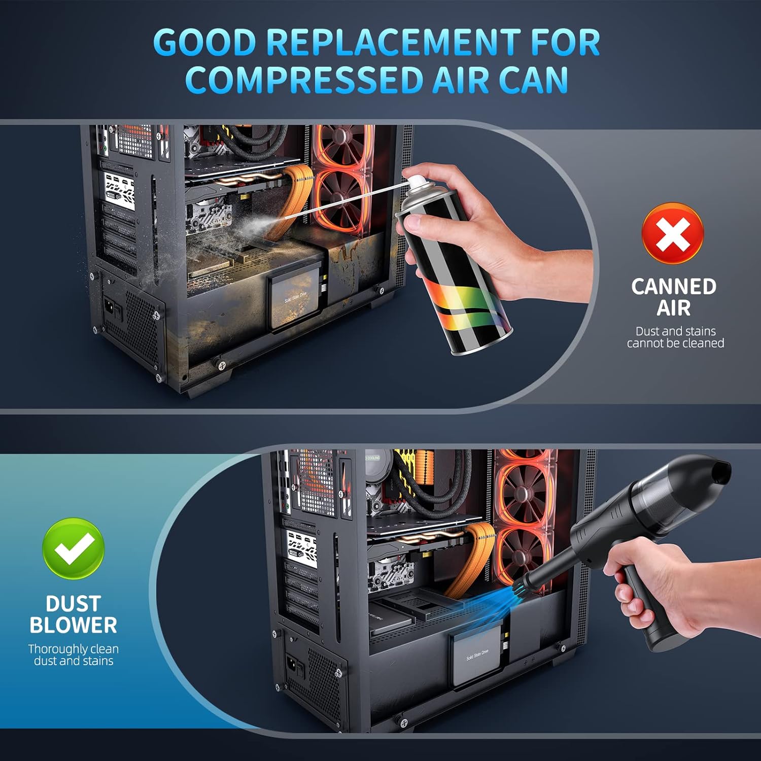 Electric Air Duster & Vacuum Cleaner 2-in-1, 110000RPM Keyboard Cleaner for PC, No Canned Air - Compressed Air Duster, Blower, Turbo Fan, Battery Powered, Refillable, PC Cleaning Kit