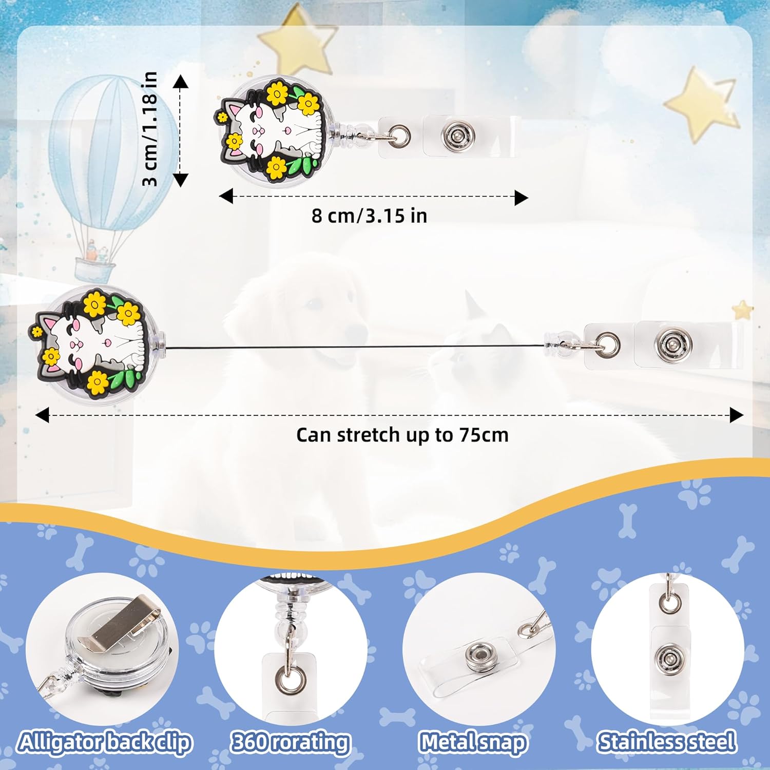 - Quality Material: these medical theme retractable id badge holders are enduring, sturdy and lightweight, Secure Buttons, Good retraction. Sturdy and Nylon Retractable string be extend to 29.5inch/ 75cm long. Not easily damaged.