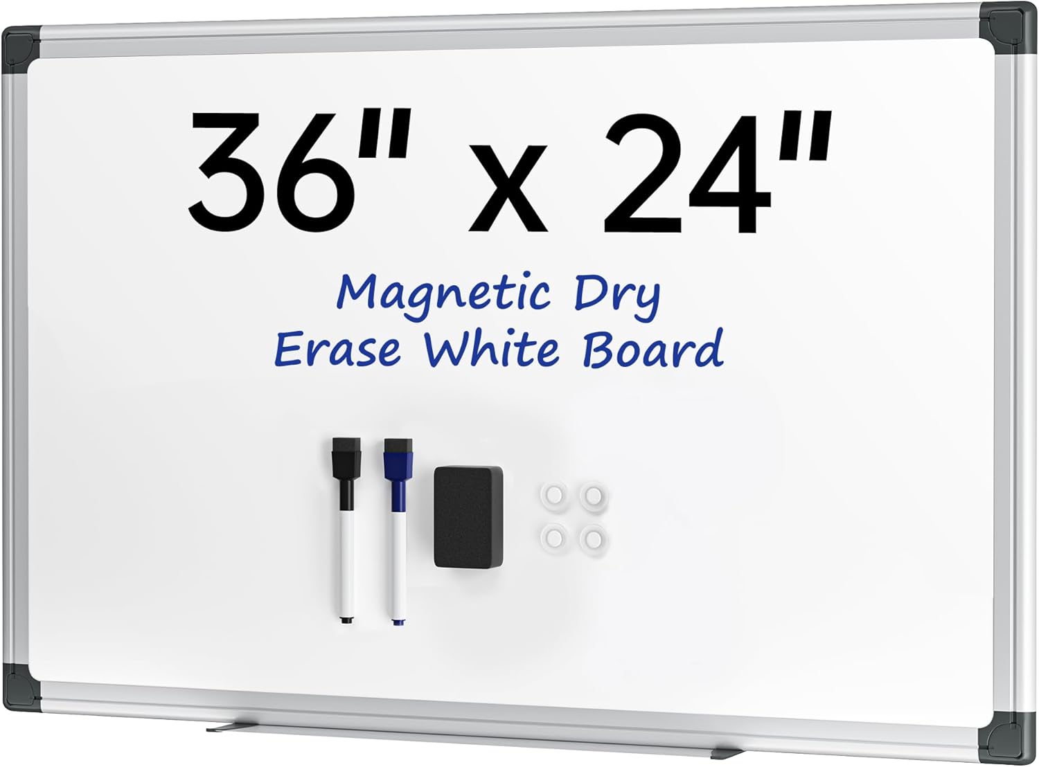 Dry Erase Board, 36 × 24 inches, Magnetic White Board for Wall, Silver Aluminium Frame, White Board Dry Erase for Kids, Students, Office, Kitchen- Includes Markers, Magnets & Eraser