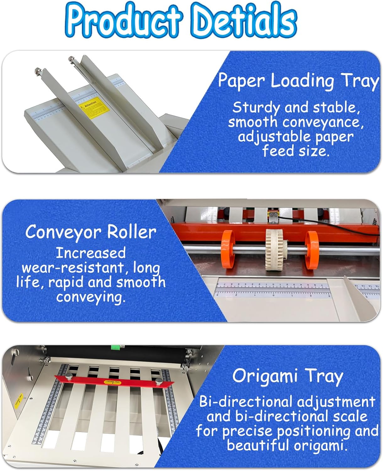 - Versatile Multi-Size Handling: The Origami Machine folds 2"x3" to 12"x27" paper (40-125g thickness), ideal for manuals, documents, and business letters. 2 adjustable plates enable Z-fold, C-fold, Letter-fold for diverse needs