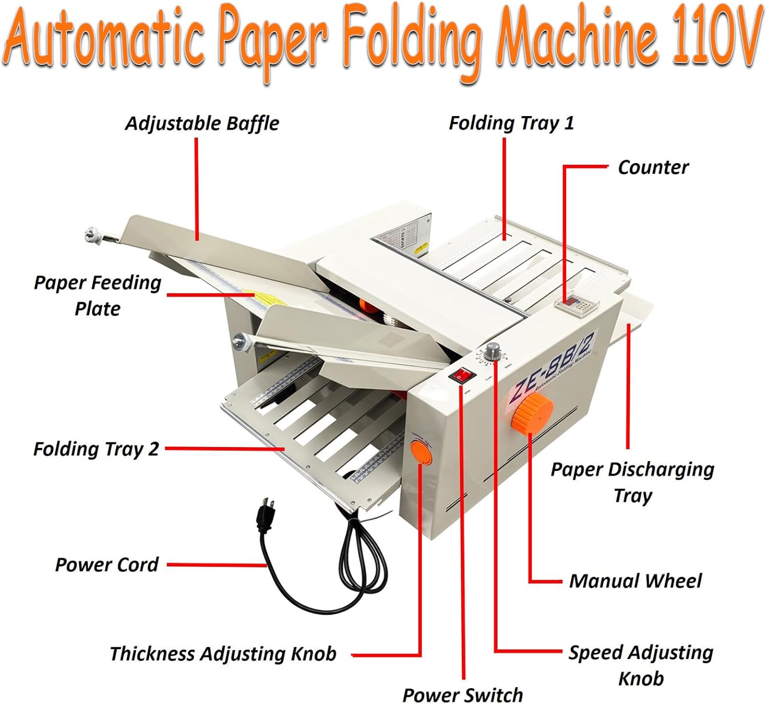 Digital Paper Folder 110V, Automatic Document Folding Machine w/ 2 Trays, Electronic Counter, Adjustable Speed (262ft/min Max), Desktop Paper Folding Machine for Manuals, Docs, Letters